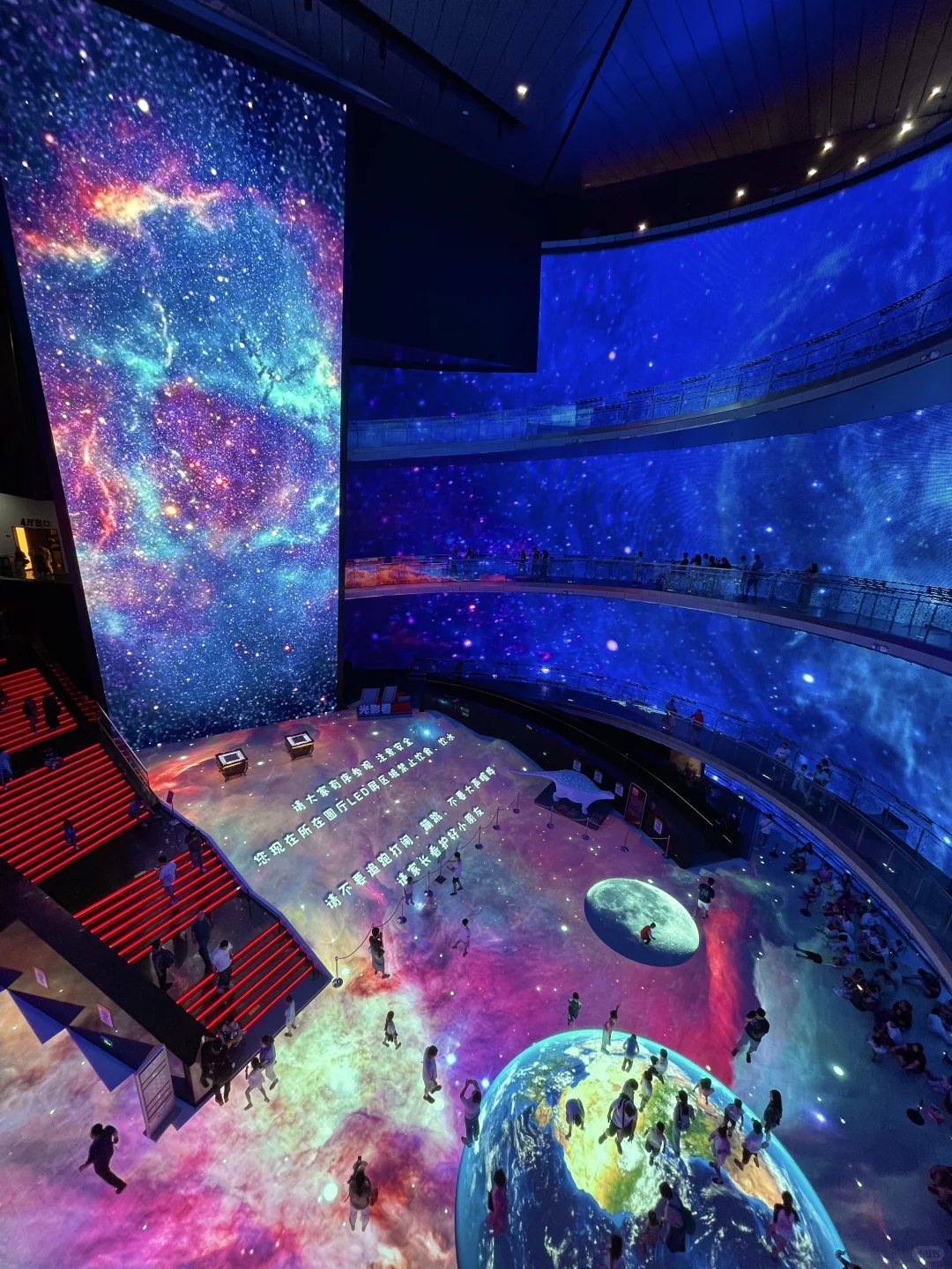 Honestly, the moment I stepped inside, I was completely amazed. The "Central Round Hall" of the film museum is stunning! It features a massive 4-story tall screen wall, and the floor merges with the screen to showcase all kinds of beautiful dynamic themes—like breathtaking oceans, dazzling fireworks, the magical world of forests and dinosaurs, and the visual impact of spaceships flying through the cosmos. Both kids and adults will be instantly captivated.