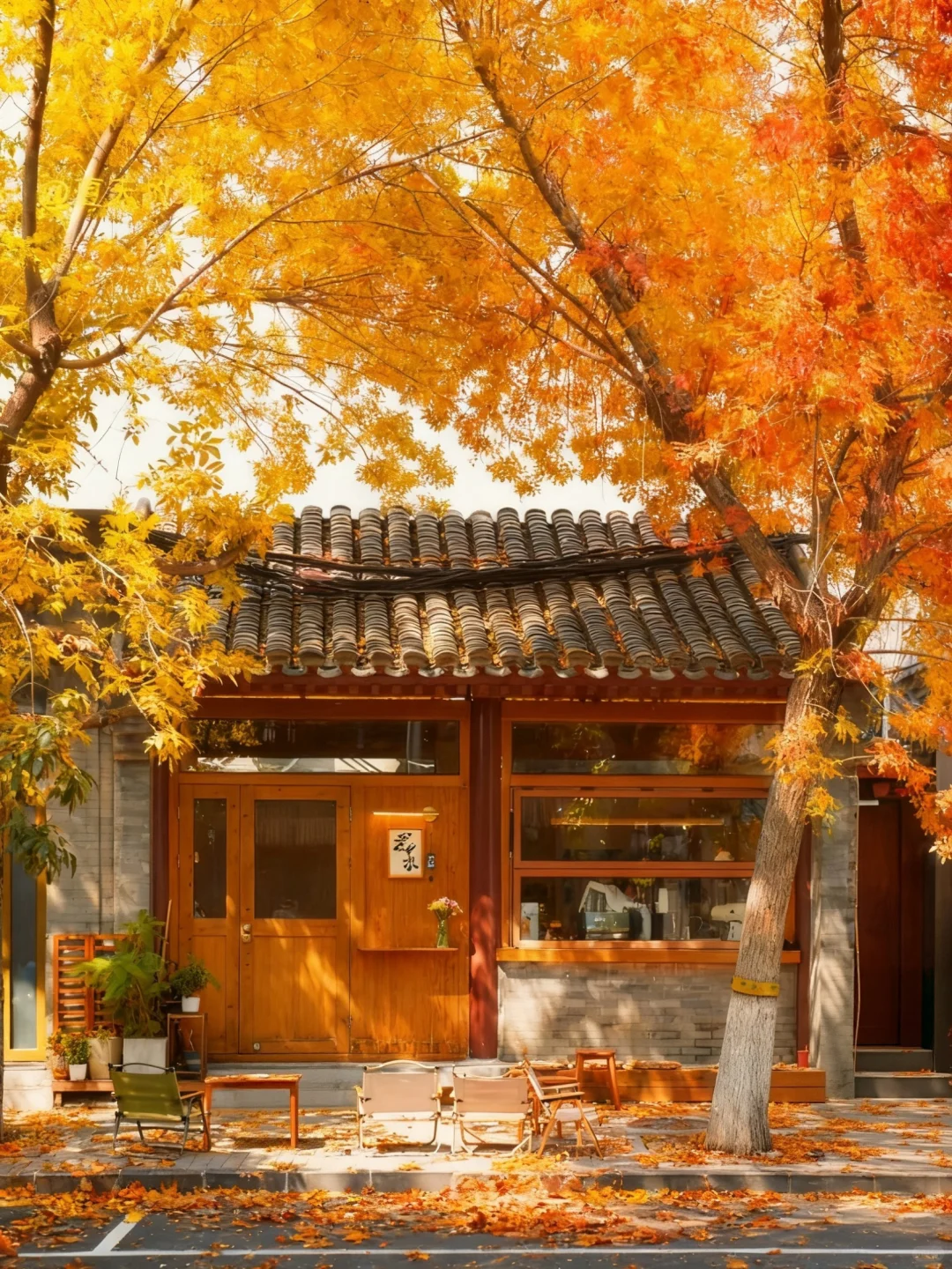 Honestly, the beauty of autumn in Beijing is really hidden in the hutongs. Those beautiful facades aren’t just decoration; each shop has its own story behind it. For example, the owner of Water Coffee is a designer, and every detail in the shop is meticulously crafted; the owner of Suzuki Eatery lived in Japan for ten years, bringing authentic Japanese flavors back to Beijing.