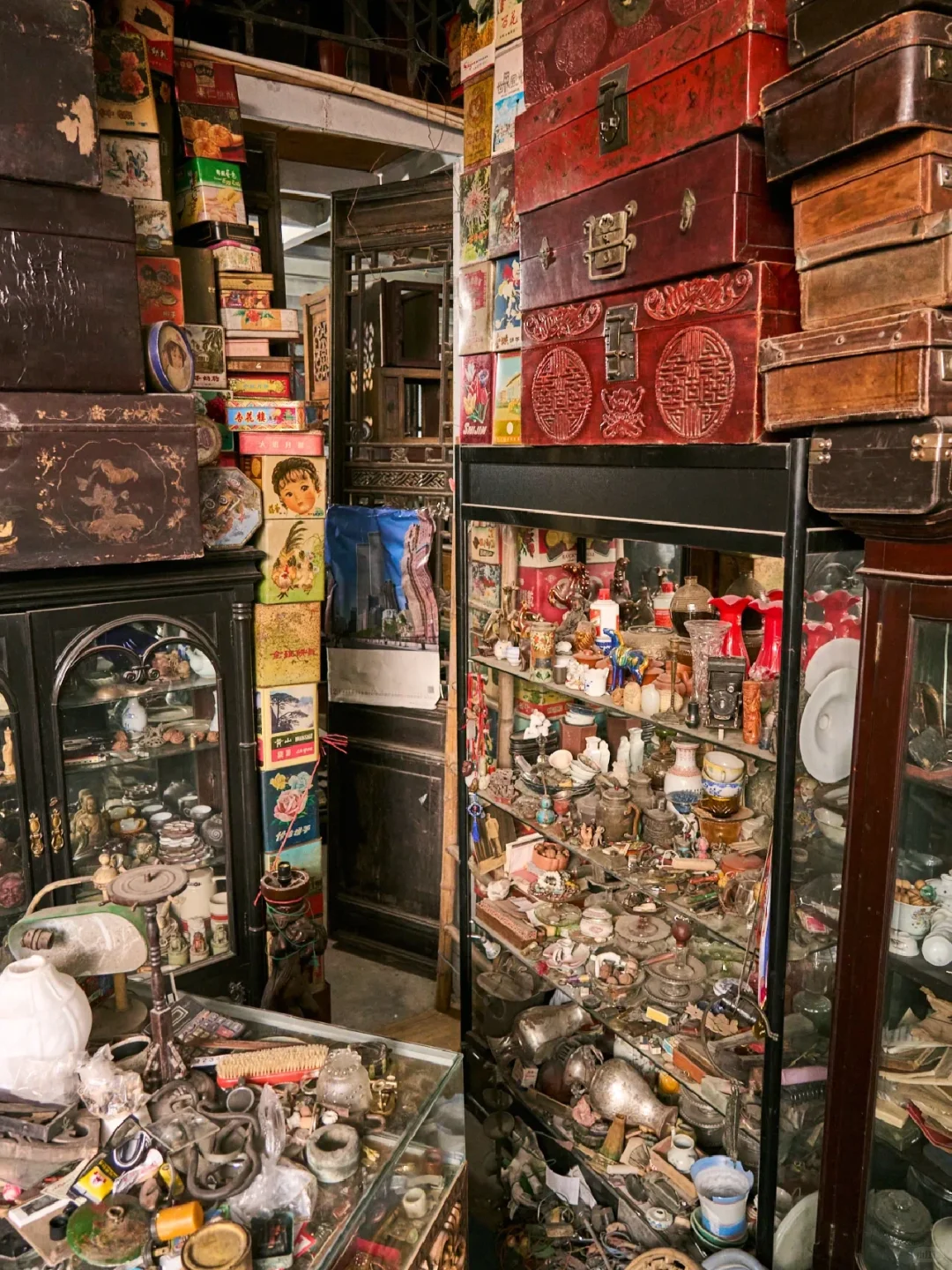 Last Saturday, I got up early and took the Line 16 straight to Pudong Hangtou, all just to check out the legendary Mulan Flower Pavilion. A friend told me, “It’s like a time black hole, once you go in, you won’t come out.” I didn’t believe it at first, but the moment I opened the door, I was stunned—cameras, record players, old suitcases, enamel basins piled up to the ceiling. Sunlight streamed in through the broken window, dust dancing in the rays, and my heart started racing as if I had stumbled into someone’s childhood storage.