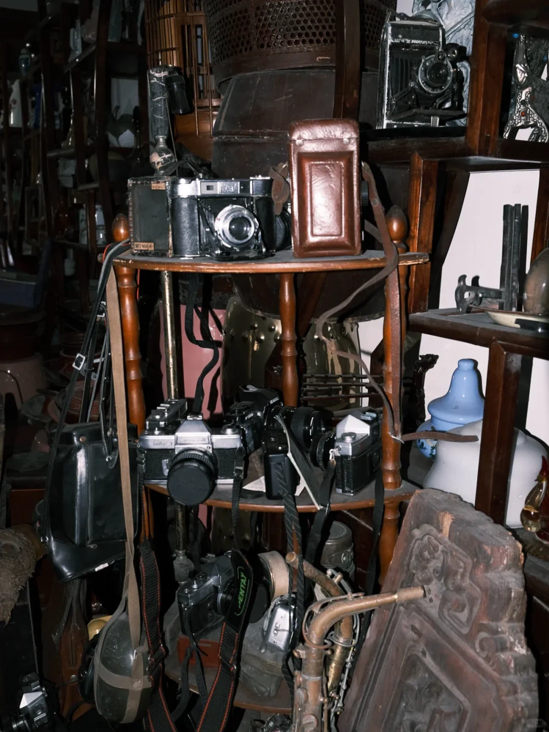 Uncle Sun handed me a disposable mask at the door, saying, “It's dusty, don’t choke.” I squeezed my way down a narrow path, stepping on 1950s patterned tiles, with an old Shanghai brand fan creaking above me. The left wall on the first floor was covered in film cameras: Seagull, Nikon, Leica—lenses coated in dust with a satisfying click when turned. I casually flipped open a Zeiss Ikonta, and inside the film compartment, I found half a roll of unexposed landscapes, frozen in time since 1993. As I walked deeper in, the smell of old wood mixed with camphor balls hit me hard. I squatted down to rummage through an enamel plate, and the back had “Shanghai Enamel Factory No. 3” stamped on it. It had a small chip on the edge, but the more I looked, the more I liked it.