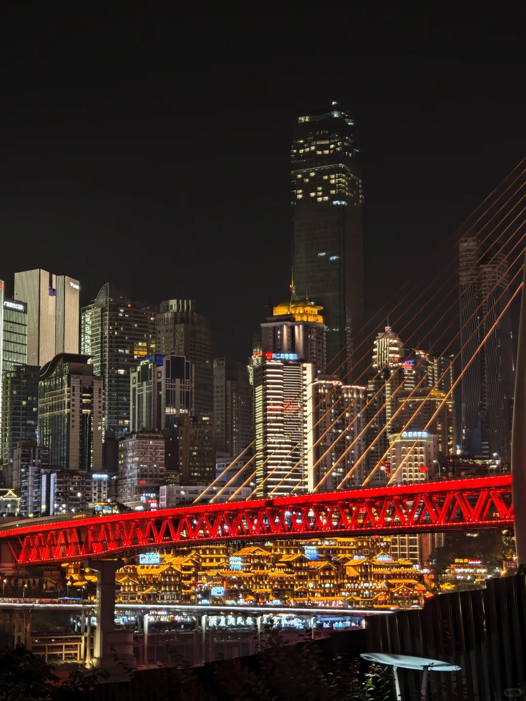 After filling up, I originally just planned to stroll around a bit, but somehow I ended up at Jiang Tan Park. The night view here is basically one of the souls of Chongqing at night, with the riverside lights and the unique layout of the mountain city—definitely worth soaking in, especially by the river, where the cool air feels so refreshing.