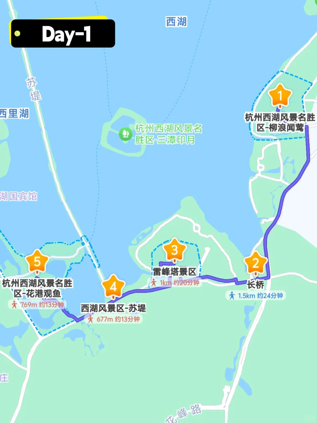 | 09:00-09:30 | Liu Long Wen Ying | Take photos of the Leifeng Pagoda reflection | 0 | Don’t arrive after 10 AM on weekends; it gets crowded. |