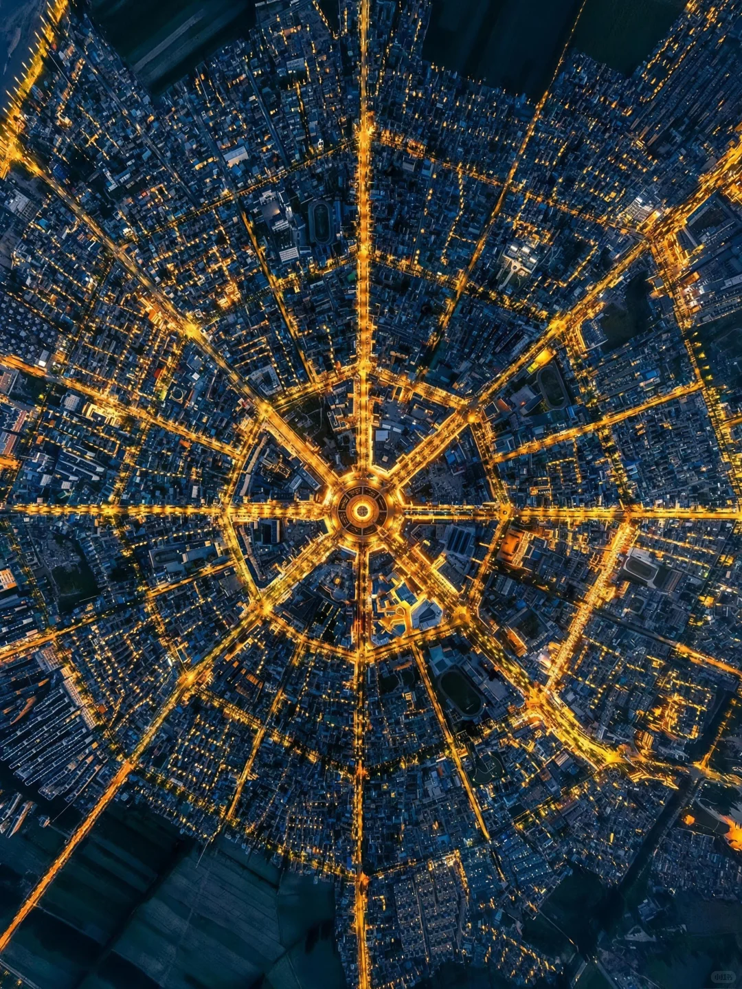 There are no traffic lights in the city, so aerial shots will reveal all eight neat entrances like "Qian, Kun, Zhen, Xun..."